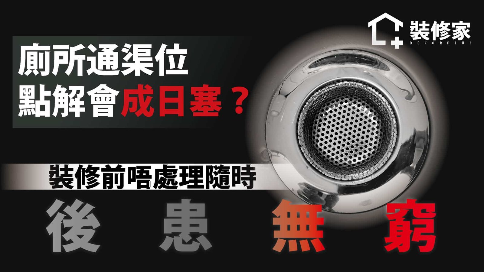 呢個係香港裝修最常聽到嘅投訴之一。好多業主以為通渠係用家問題、清潔唔好,其實好多時根源係裝修時偷工減料、設計冇諗清楚。廁所同企缸位嘅排水設計,就係成間屋最容易出事又最難翻工嘅位置。一旦塞渠,就可能要敲地台、拆磚、封渠口,費時失事。今次就講清楚點解通渠位成日塞,以及裝修前一定要要求處理好嘅4個關鍵細節,免得日後日日嘈爆。