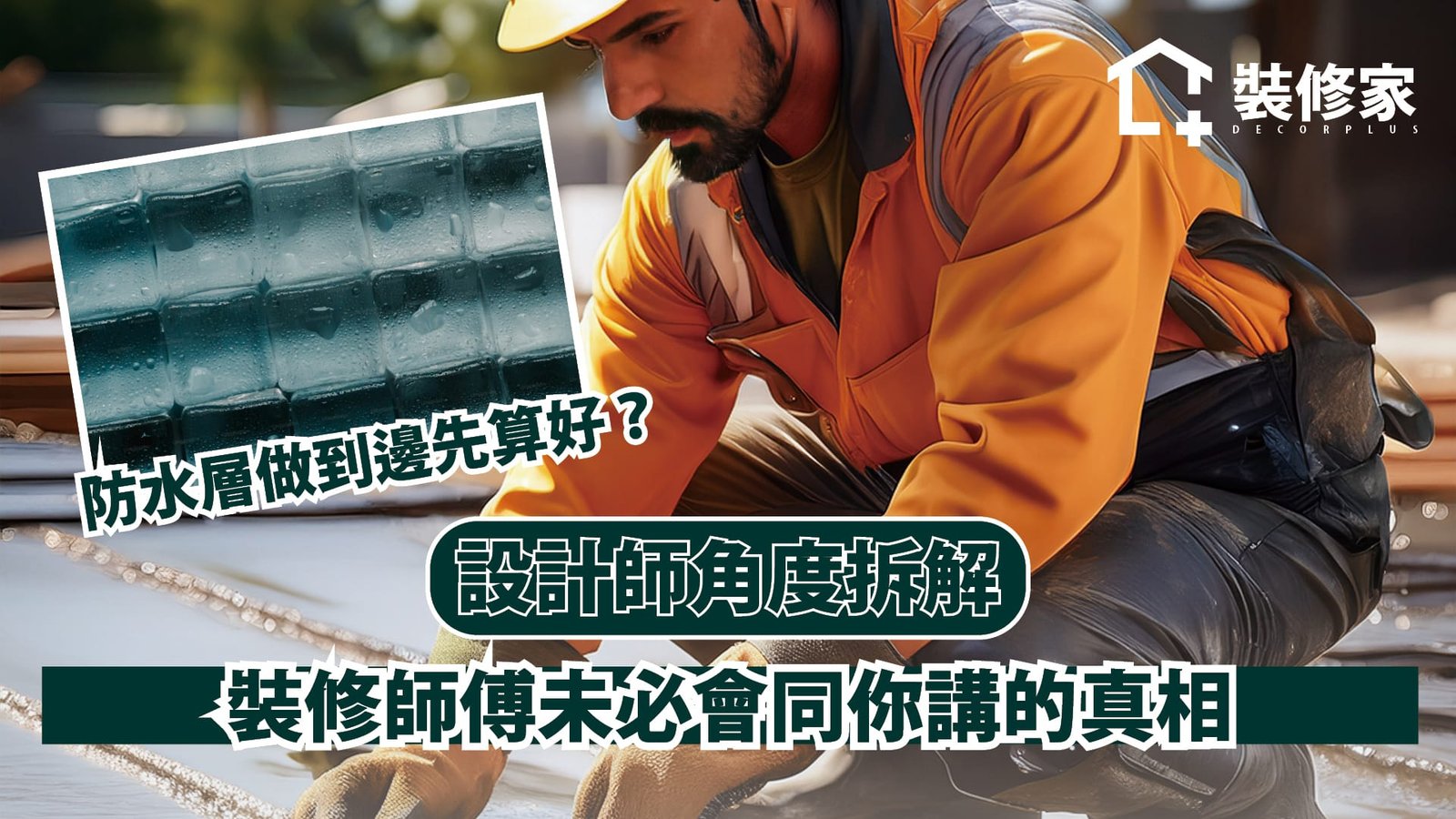 講到裝修防水,師傅十個有九個會同你講「放心啦,幫你做晒防水!」但到底咩叫「做晒」?做到邊先算夠? 很多業主根本冇概念,結果簽咗報價、錢俾咗,完工睇落冇水漬就收貨,但半年、一年後滲水痕出晒嚟,維修仲要連樓下鄰居埋單。真相係:防水層冇法例硬性規定要做到幾高幾厚,好多時靠良心同專業知識。 今次就用設計師角度同你拆解,浴室、廚房、陽台常見「防水層做到邊先算夠」嘅真相,同埋點樣驗收先真正安心。