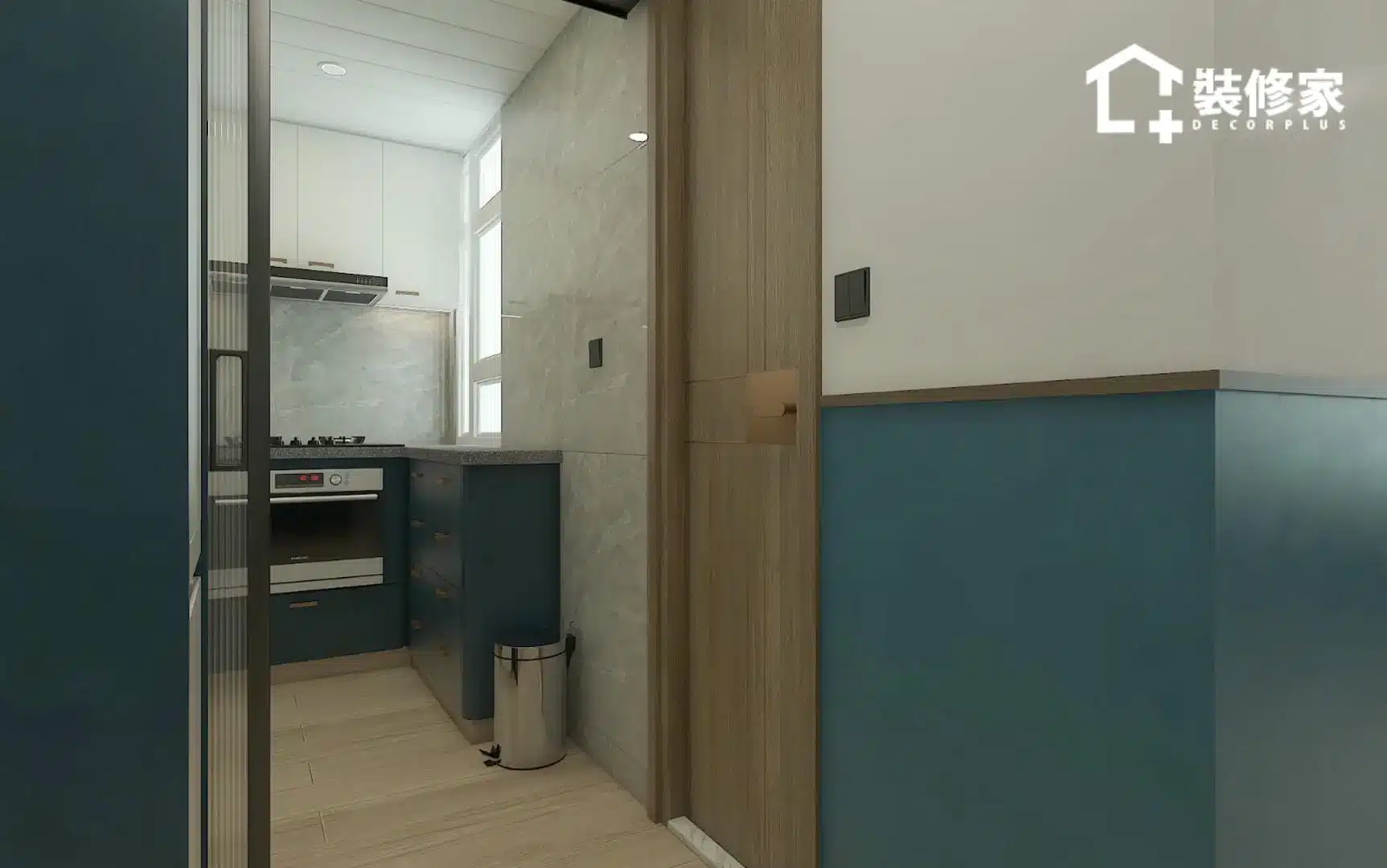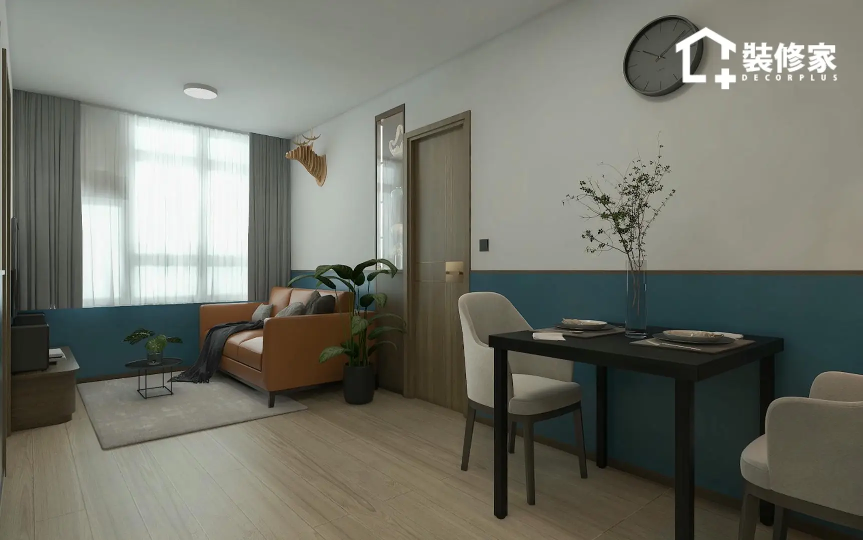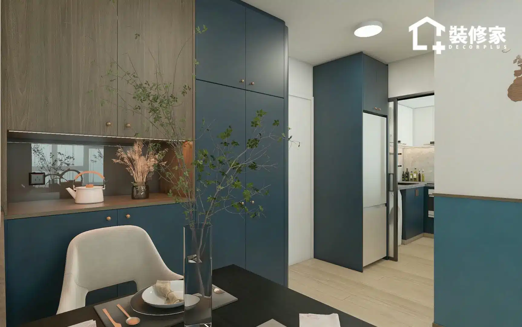 這個單位的設計風格,以北歐清新風為核心,整體色調以霧藍、溫潤木色為主,並以純白牆面作為基底,營造清爽而有層次的視覺效果。空間設計講求簡約而不單調,透過材質變化與細節點綴,展現北歐設計的細膩質感,例如玄關與餐區的藍色特色牆,搭配金屬小把手,為空間注入一絲溫暖的精緻感。