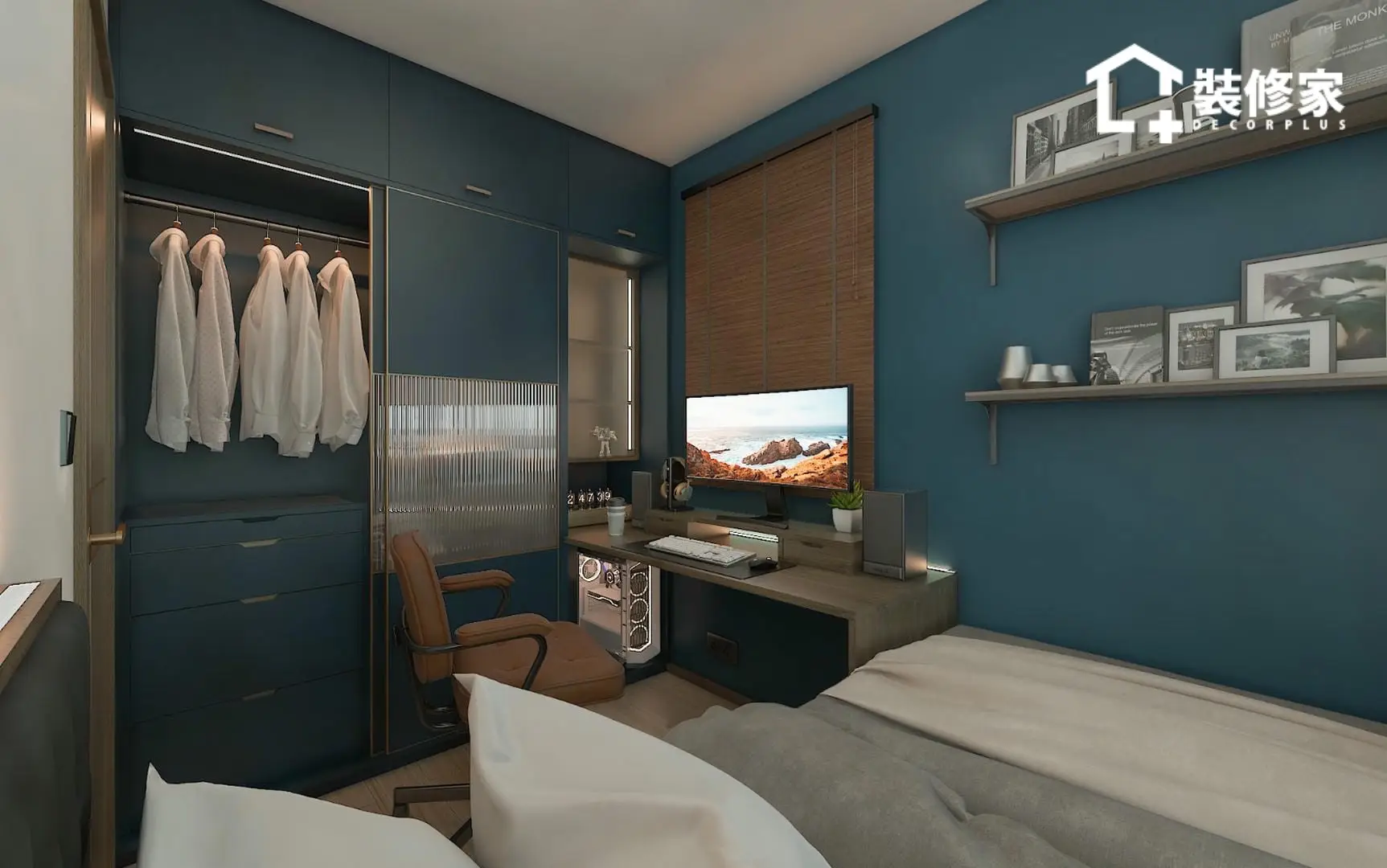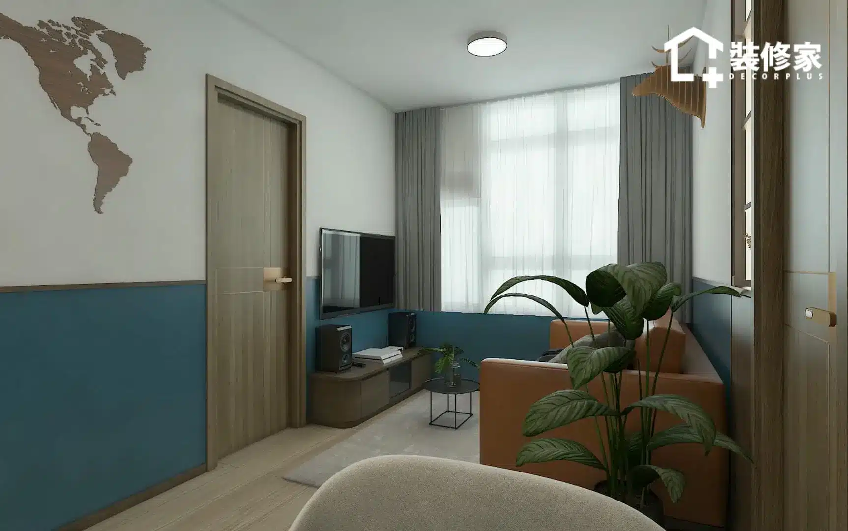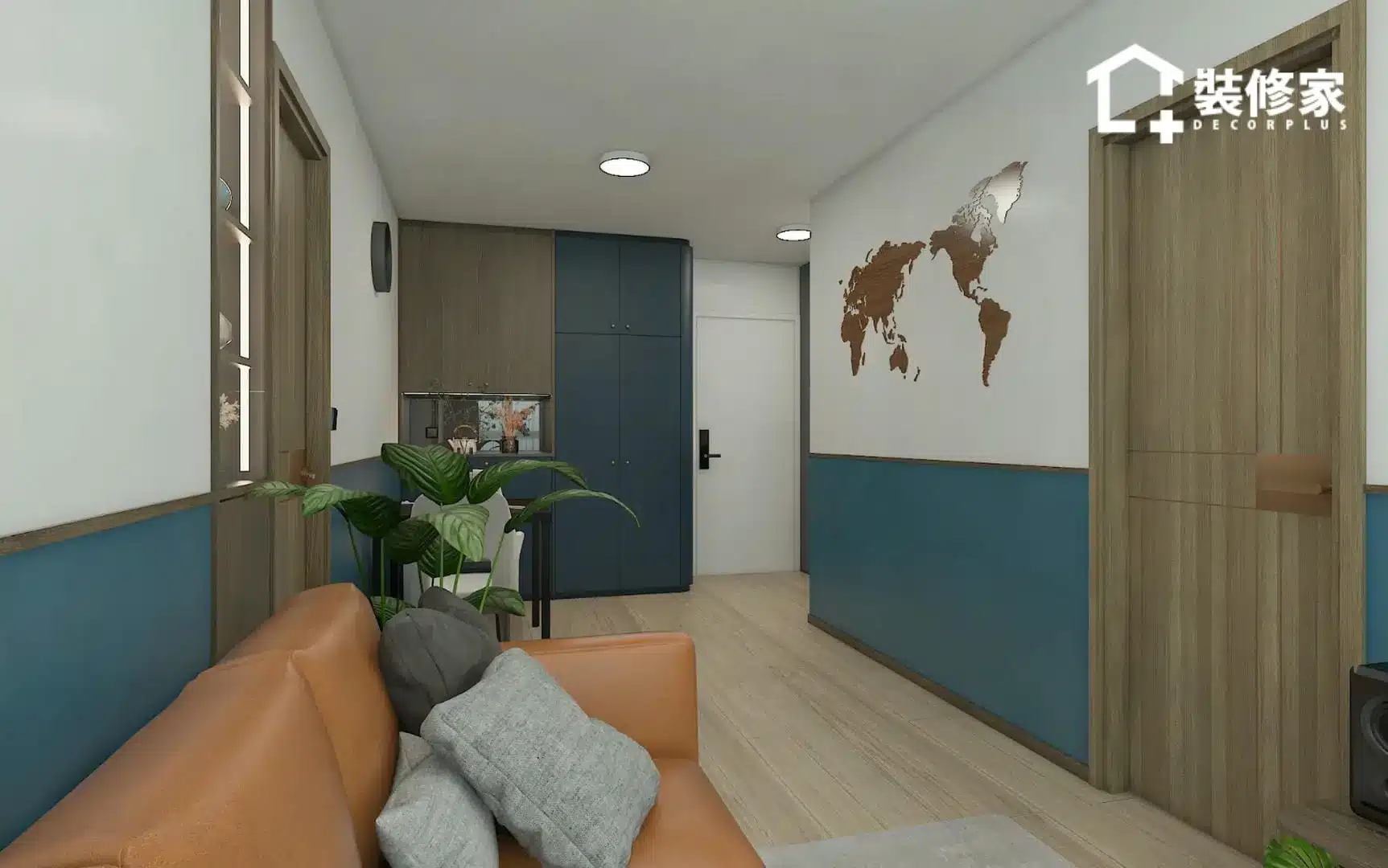 這個單位的設計風格,以北歐清新風為核心,整體色調以霧藍、溫潤木色為主,並以純白牆面作為基底,營造清爽而有層次的視覺效果。空間設計講求簡約而不單調,透過材質變化與細節點綴,展現北歐設計的細膩質感,例如玄關與餐區的藍色特色牆,搭配金屬小把手,為空間注入一絲溫暖的精緻感。