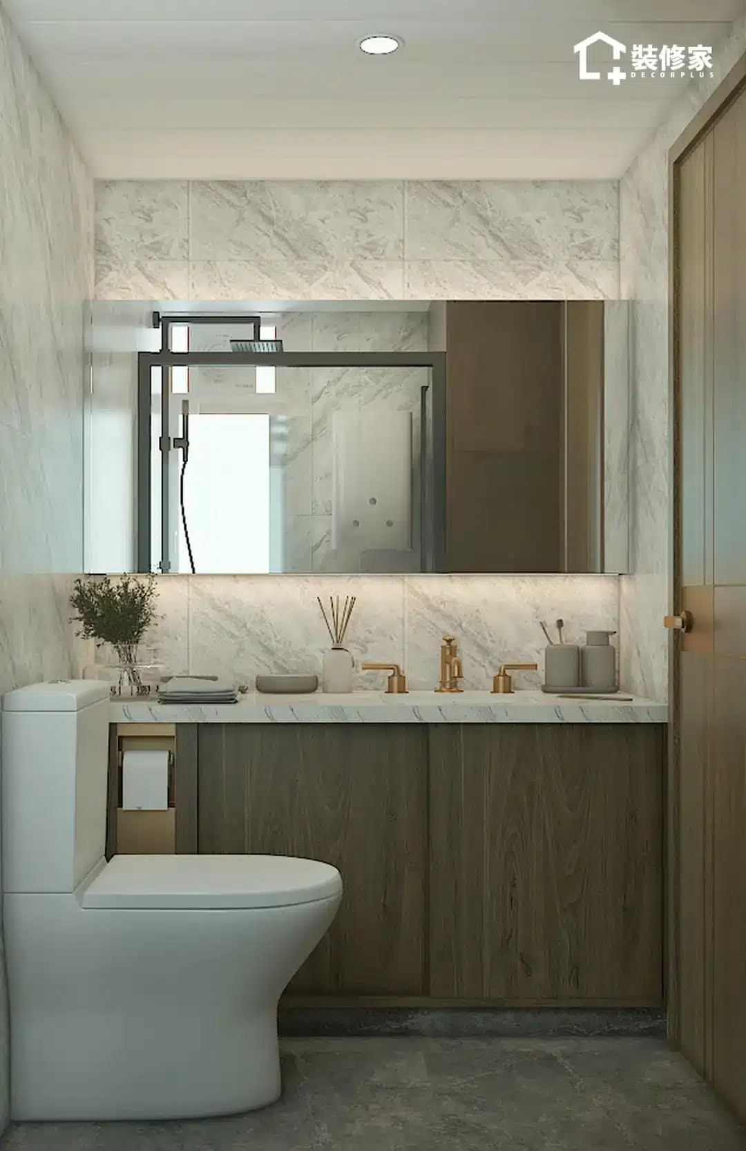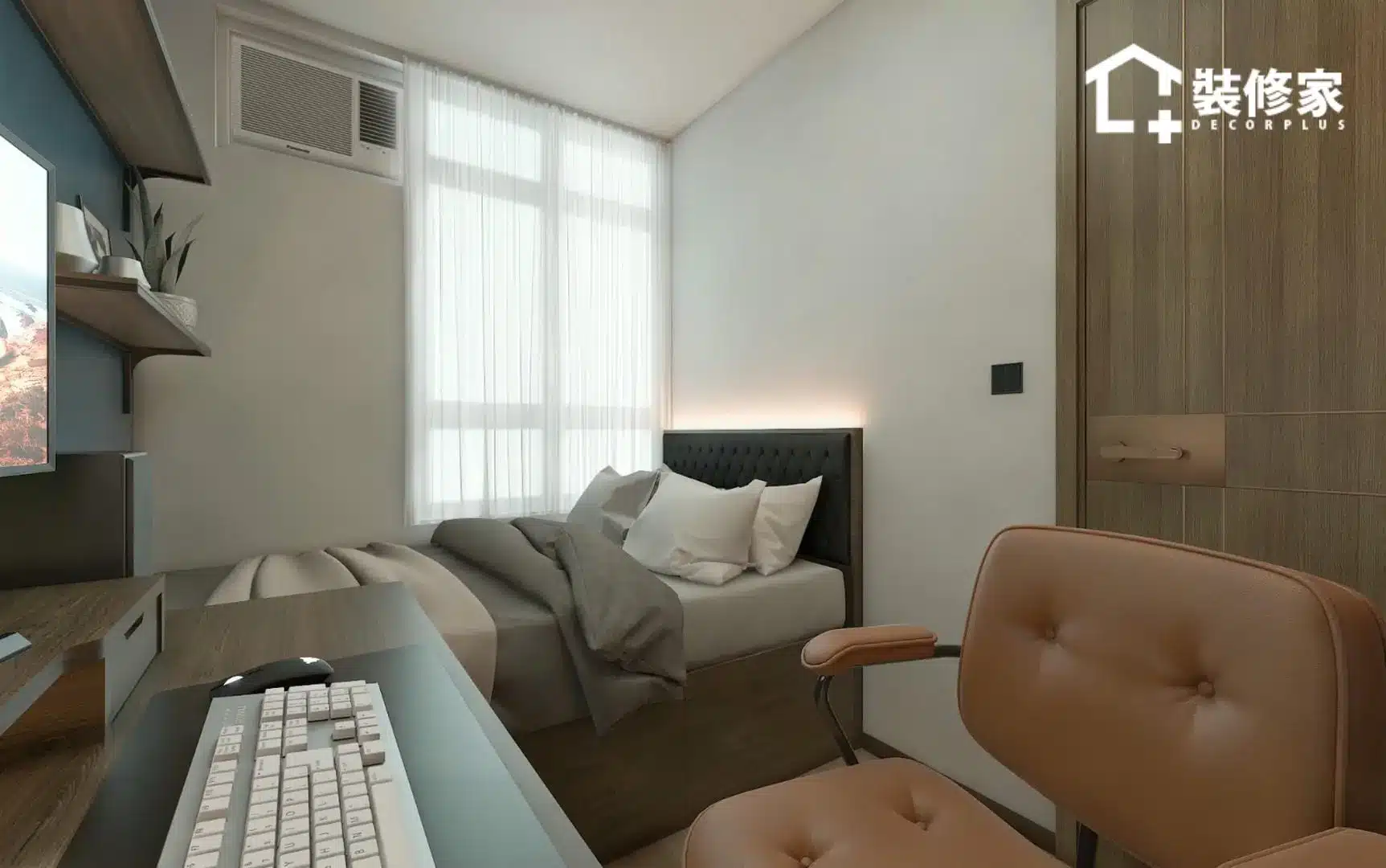設計師亦非常注重小空間的靈活運用,從玄關到客廳,均以一體化設計串連收納與展示功能,讓小坪數的家居擁有完善的生活機能。房間延續整體色調,搭配局部燈帶與玻璃元素,提升視覺層次感,同時兼顧收納需求。而浴室則選用雲石紋磚與金色龍頭,帶出一點輕奢的氛圍,為整體北歐風格添上不一樣的質感細節。
