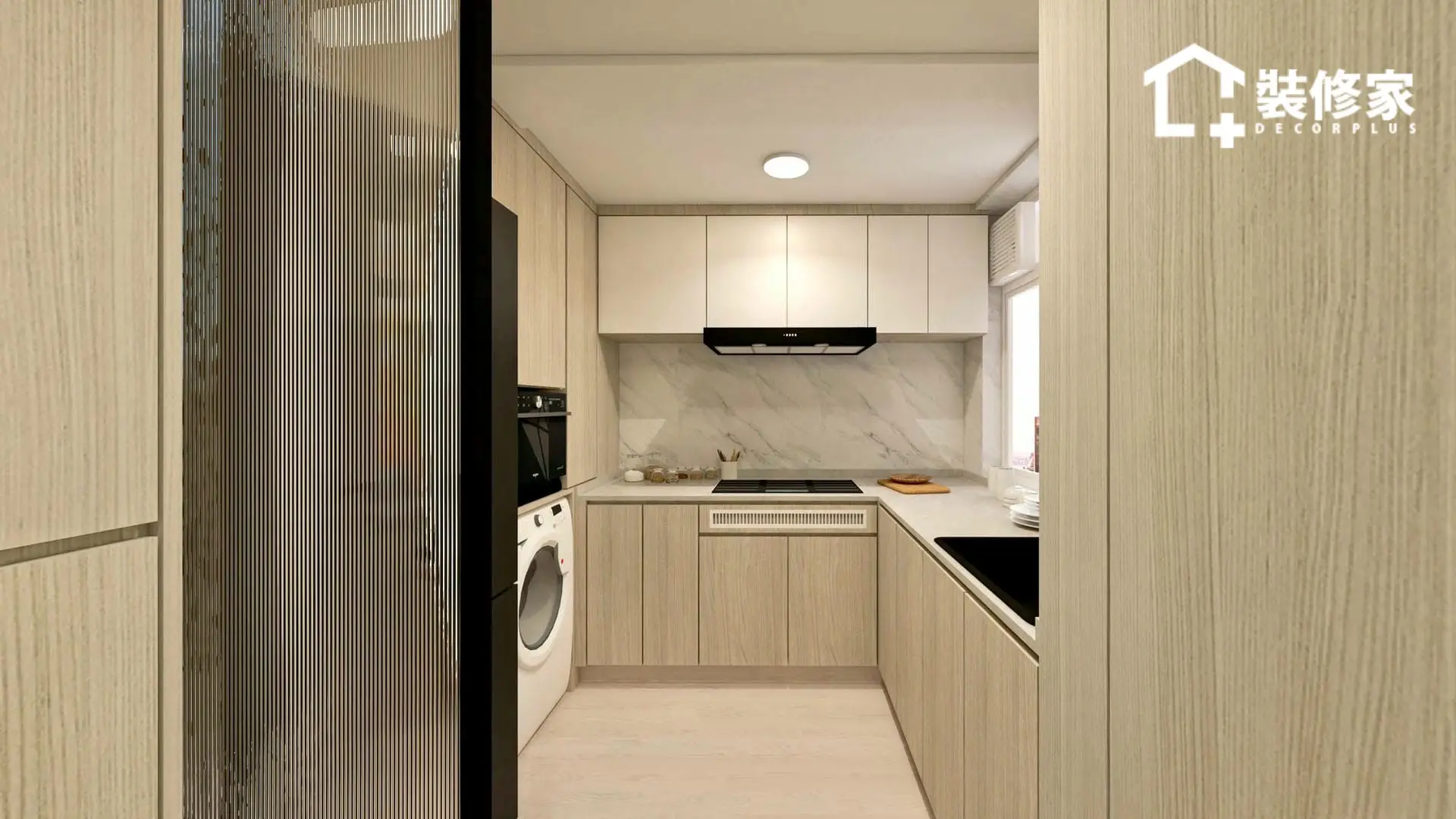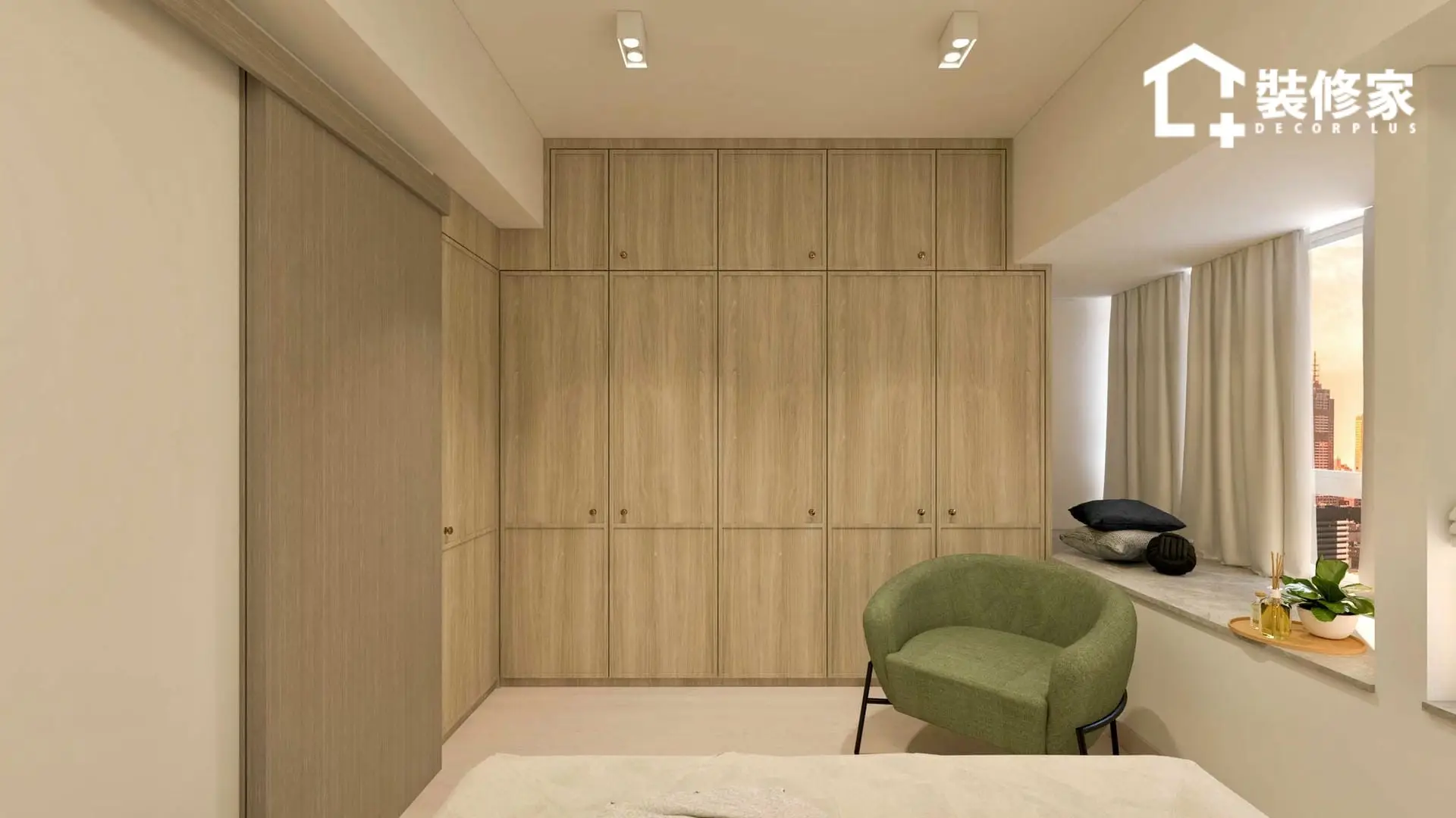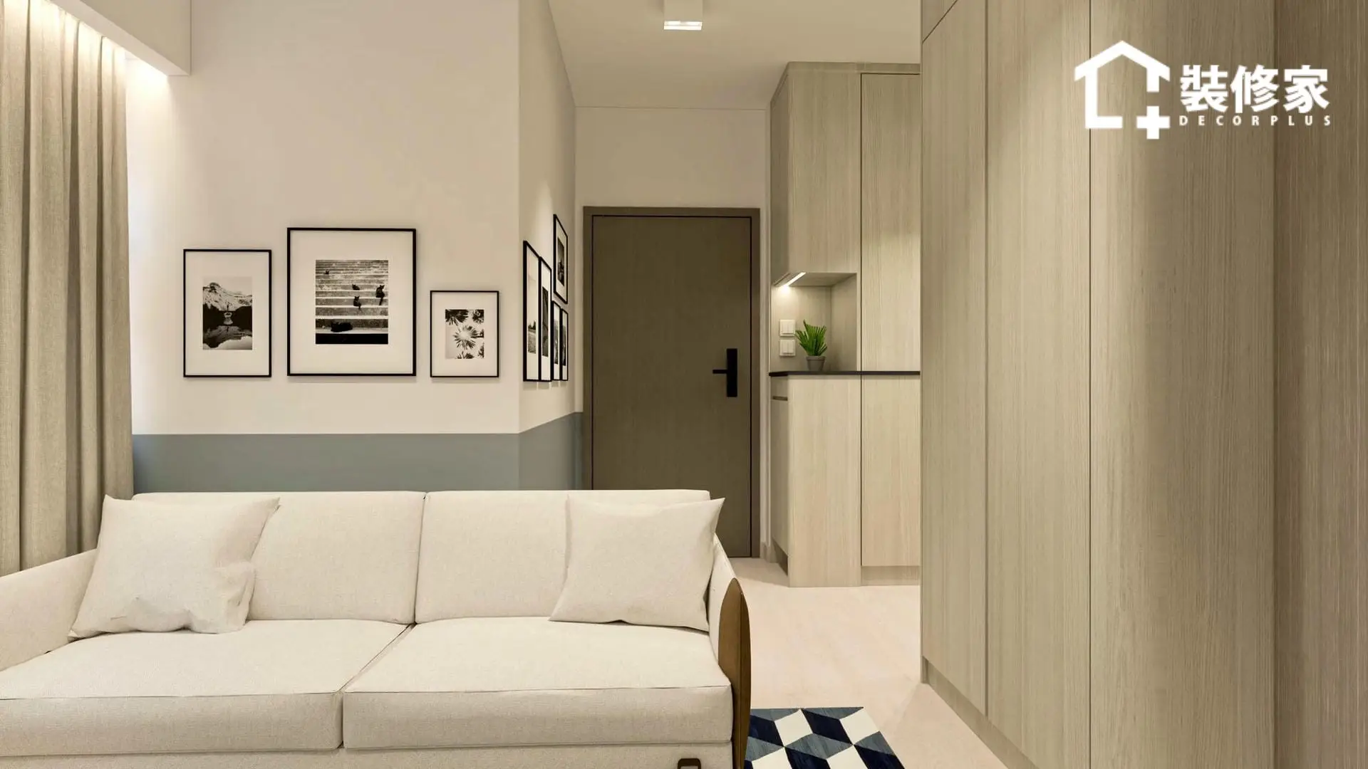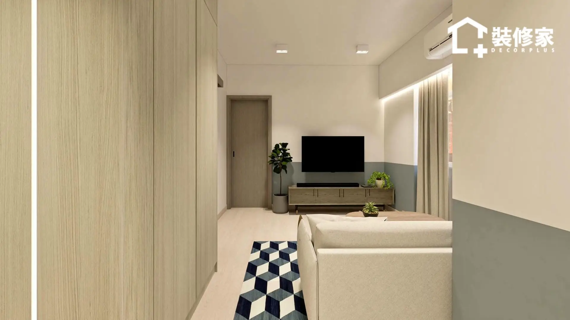 客廳區域設計注重舒適與實用,簡約的布藝沙發搭配淺色木質茶几,營造出輕鬆愉悅的休閒空間。餐廳與客廳相連,使用簡潔的餐桌椅組合,強調空間的通透性與連貫性。臥室延續整體設計風格,牆面色調柔和,搭配簡約的床具與收納家具,營造出寧靜舒適的休息環境。整體設計在細節上融入現代元素,如簡約的燈具設計和適當的裝飾點綴,提升空間的時尚感與品位。