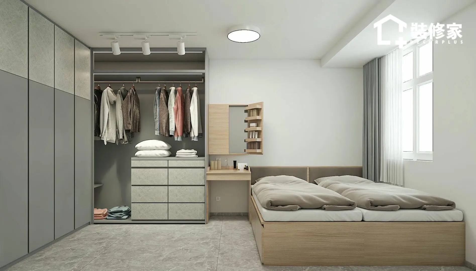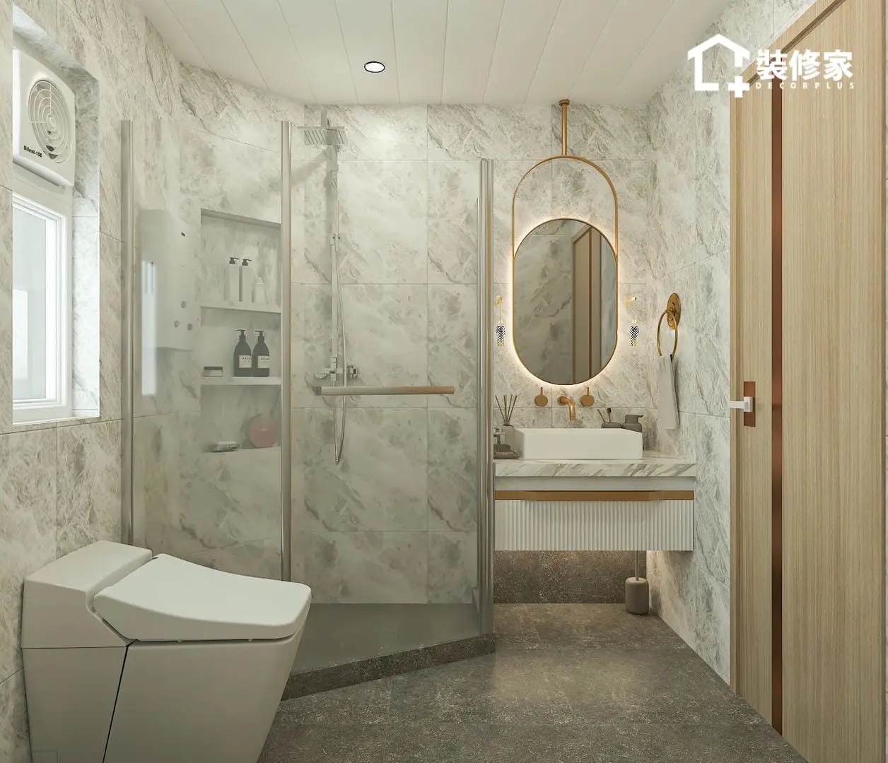 臥室則運用柔和的布藝元素及簡潔的家具線條,使空間顯得更為舒適與雅致。同時,金屬把手、鏡面裝飾與質感木飾面的運用,進一步提升整體質感。廚房與浴室空間則採用大理石紋牆面搭配金屬細節,突顯高貴與實用並存的設計理念,讓居住者在日常生活中感受到精緻且高品質的氛圍。